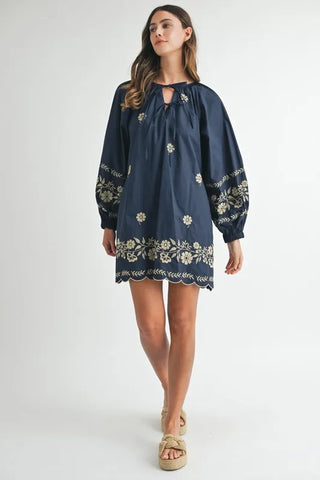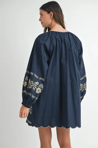 The Embroidered Long Sleeve Peasant Mini Dress is a perfect blend of bohemian charm and timeless elegance. Featuring delicate embroidery along the neckline and cuffs, this dress adds a touch of artistry to its flowing silhouette. The long sleeves and relaxed fit give it a comfortable, airy feel, while the mini length adds a playful twist. Crafted from soft, breathable fabric, it’s perfect for both casual outings and special occasions. Pair it with sandals or ankle boots for a laid-back yet stylish look that effortlessly captures the essence of carefree, modern fashion.