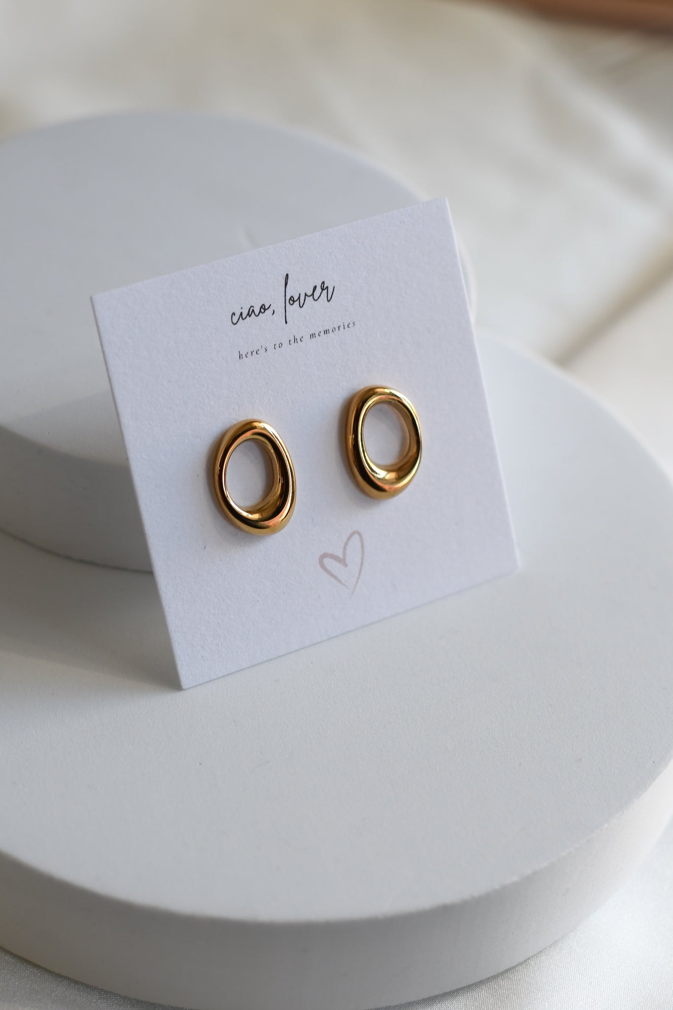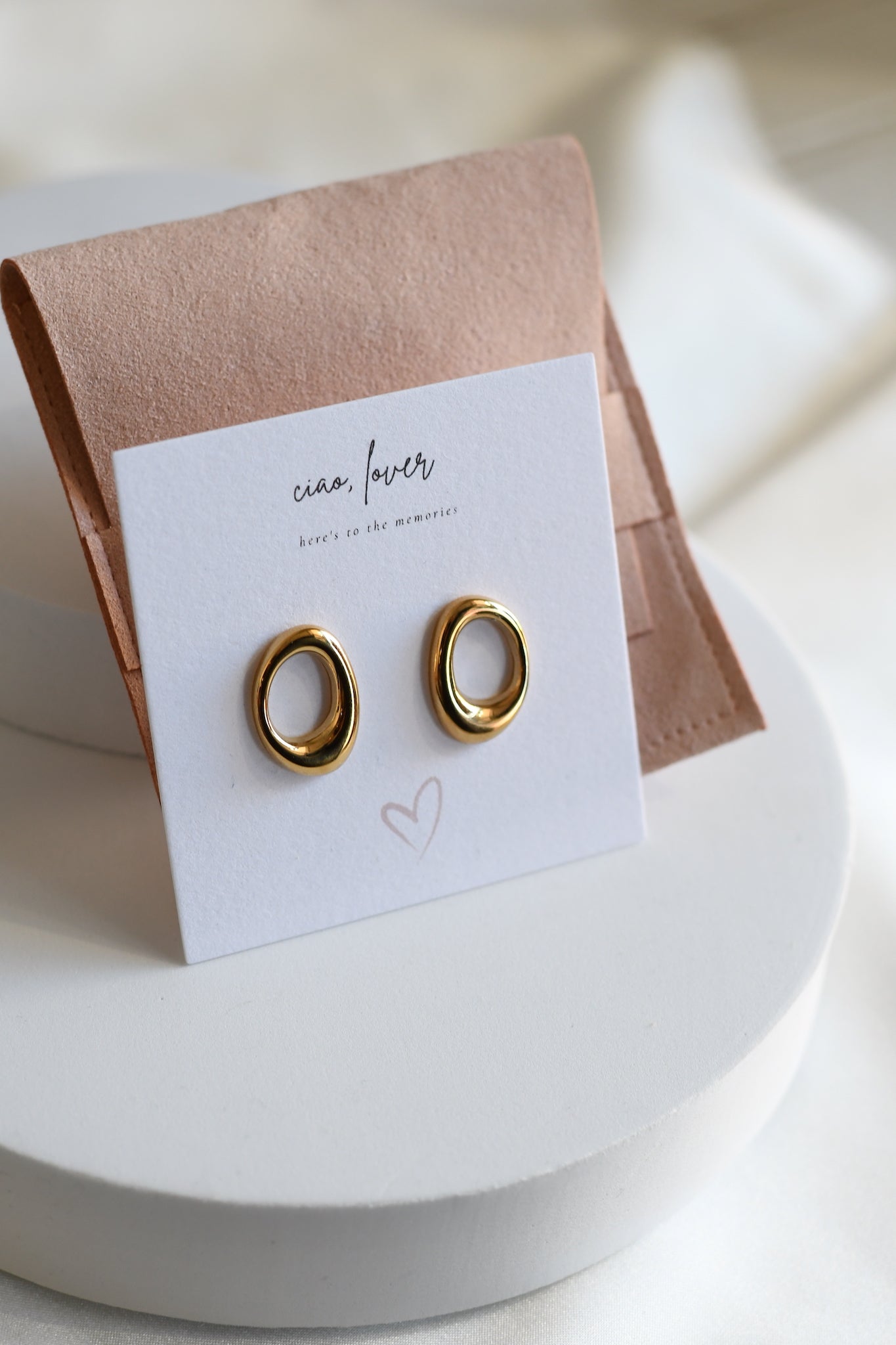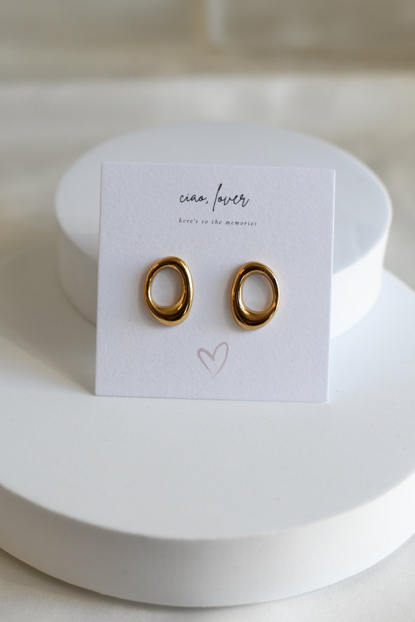 Gold plated oval stud earrings. Perfect feminine touch. Lightweight, and great for every day wear.