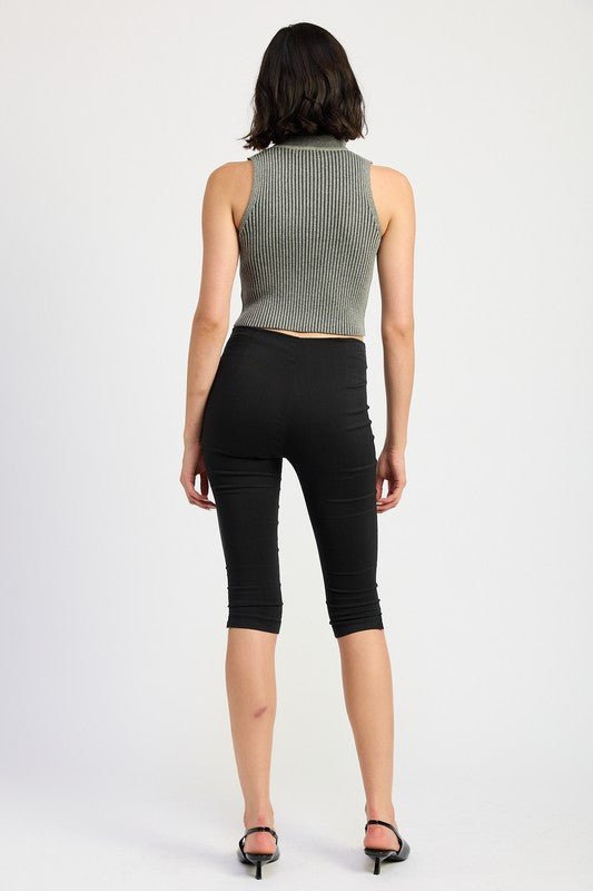 TURTLE NECK RIBBED SLEEVELESS TOP
